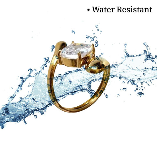 Jewellery Hat Gold-Plated Ring with Marquise Cut Crystal Stone, Modern Twist Design, Adjustable Ring, Anti Tarnish, Water Resistant, Lightweight, Gift Packaged