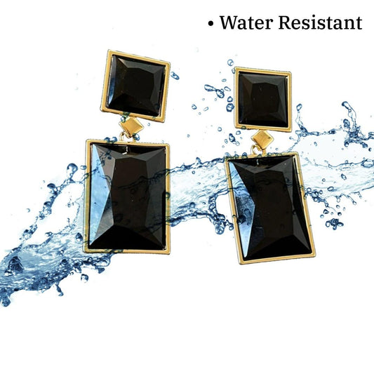 Geometric Dangle Earrings For Women | 6 cm | Black Crystal | Gold-Plated | Square Design | Anti Tarnish | Water Resistant | Western Style | Lightweight