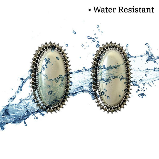 Oval shape pearl stud earrings silver | 4 cm | Antique Design | Anti Tarnish | Water Resistant | Western Style | Lightweight | Gift Packaged
