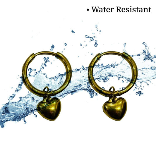 Heart Charm Gold-Plated Hoop Earrings for Women, 2.5 cm, Anti Tarnish, Water Resistant, Lightweight, Western Style, Gift Packaged