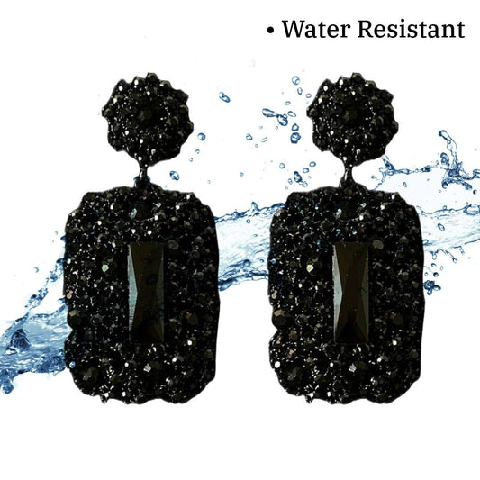 Geometric Dangle Earrings For Women | 6 cm | Black Crystal | Gold-Plated | Square Design | Anti Tarnish | Water Resistant | Western Style | Lightweight
