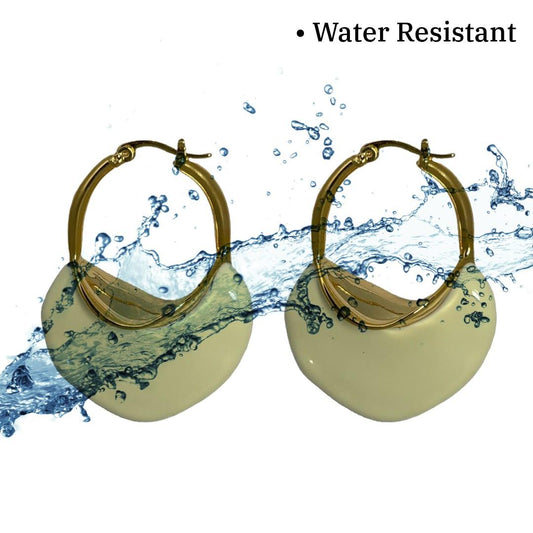 Elegant Oval Dangle Earrings For Women, 6 cm, Beige Enamel with Gold-Plated Finish, Women's Fashion Jewellery, Anti Tarnish, Water Resistant, Gift Packaged