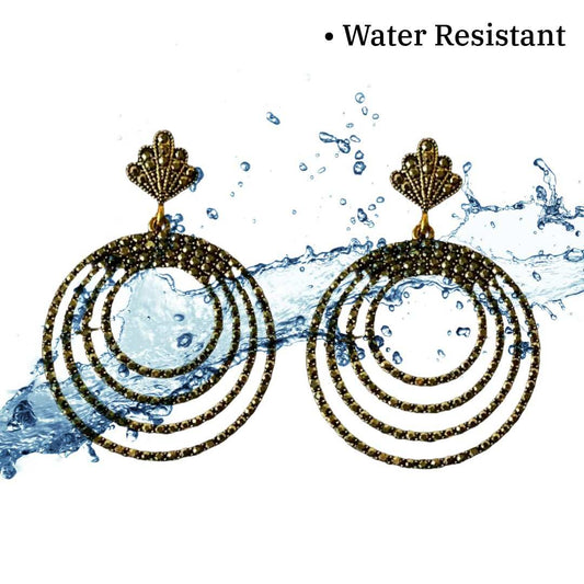 Gold Plated Multi-Circle Dangle Earrings For Women, 6 cm, Fan-Shaped Stud Design, Anti Tarnish, Water Resistant, Western Style, Lightweight, Gift Packaged