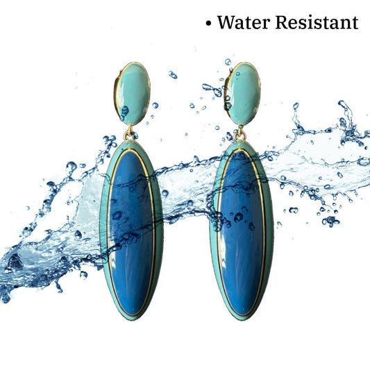 Oval dangle earrings gold | 6 cm | Blue and Turquoise | Gold-Plated | Double-Layered Design | Anti Tarnish | Water Resistant | Lightweight | Gift Packaged