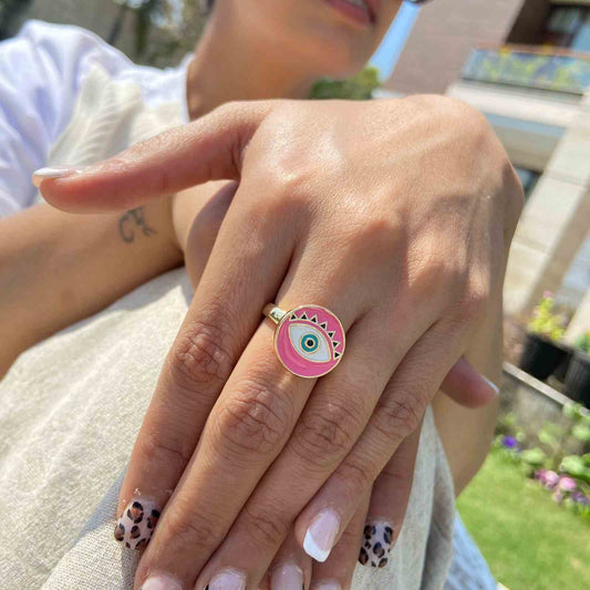 Evil Rings | Pink Ring | Gold Plated Evil Ring for Women | Artificial Jewellery