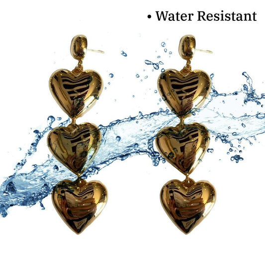 Triple Heart Drop Dangle Earrings | 4 cm | Gold Plated | Women's Fashion Jewellery | Anti Tarnish | Water Resistant | Lightweight | Gift Packaged