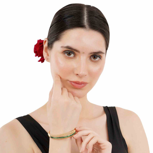 Studded Snake Bracelet For Women, Gold Plated Fashion Bracelet with Emerald Eyes, 6.5 cm, Anti Tarnish, Water Resistant, Lightweight, Gift Packaged