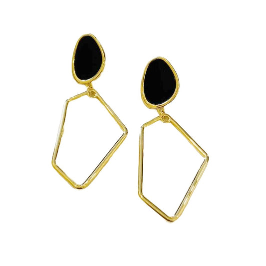 Black Earrings, Black and Gold Geometric Dangle Earrings, 6 cm, Lightweight Dangle Design for Party, Anti Tarnish, Water Resistant, Lightweight, Gift Packaged