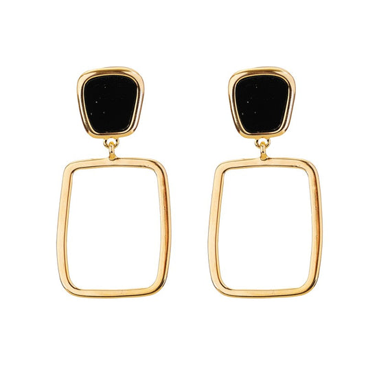 Black Earrings, Square Hoop Earrings, 4.5 cm, Black and Gold Plated, Geometric Design, Anti Tarnish, Water Resistant, Lightweight, Gift Packaged