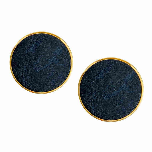 Black Earrings, Round Black and Gold Stud Earrings for Women, 2.2 cm, Anti Tarnish, Water Resistant, Lightweight, Gift Packaged
