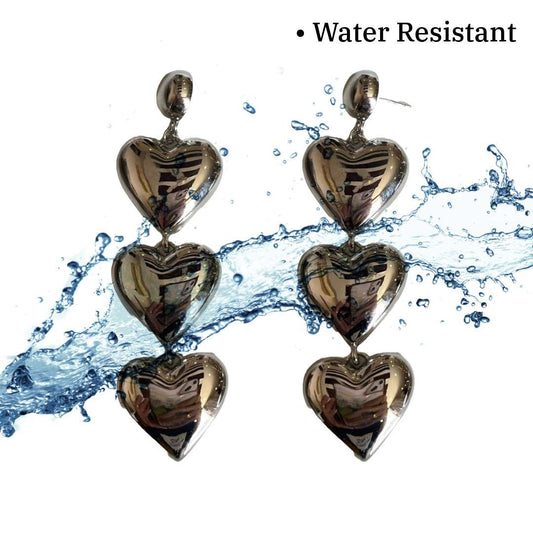 Triple Heart Drop Dangle Earrings, 10 cm, Silver-Plated, Statement Fashion Jewellery for Women, Anti Tarnish, Water Resistant, Lightweight, Gift Packaged