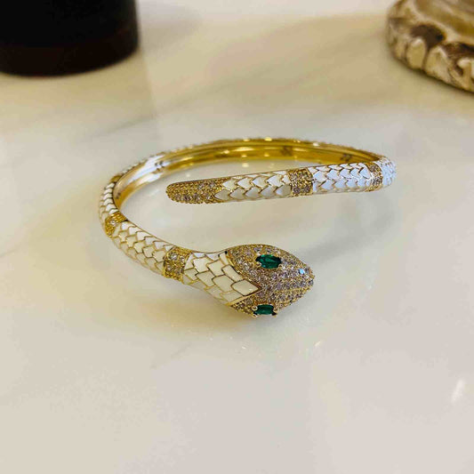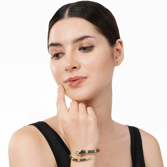 Studded Snake Bracelet For Women, Gold Plated Fashion Bracelet with Emerald Eyes, 6.5 cm, Anti Tarnish, Water Resistant, Lightweight, Gift Packaged