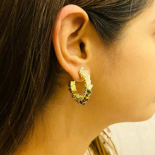 Confetti Crystal Earrings Greenish Tinted - Premium Collection Fashion Jewellery July 2022