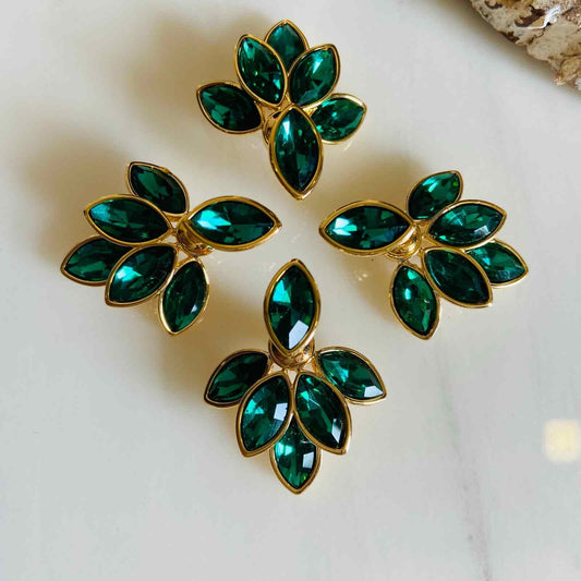 Earrings - Emerald Leaves - Gold Plated - Premium Collection Fashion Jewellery August - September 2022 Western Jewellery