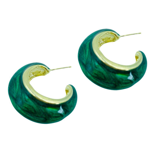 Earrings Jade Good Luck Stone C Shaped - Premium Collection - Gold Plated Fashion Jewellery