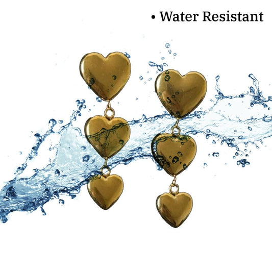 Triple Heart Drop Dangle Earrings | 4 cm | Gold Plated | Women's Fashion Jewellery | Anti Tarnish | Water Resistant | Lightweight | Gift Packaged