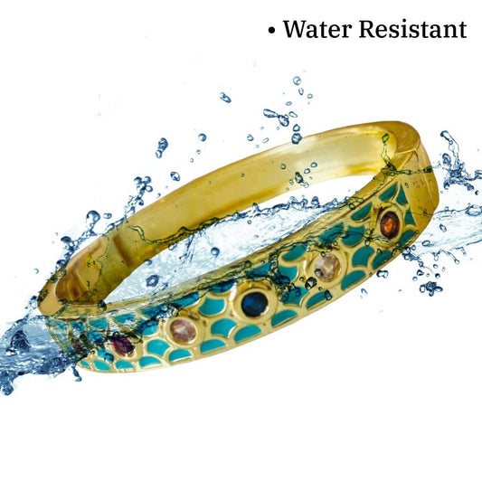 Studded Snake Bracelet For Women, Gold Plated Fashion Bracelet with Emerald Eyes, 6.5 cm, Anti Tarnish, Water Resistant, Lightweight, Gift Packaged