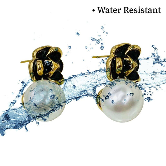 Elegant Black and Gold Teardrop Stud Earrings, 3 cm, Water Resistant, Anti-Tarnish Plated, Lightweight Fashion Jewelry with Gift Package