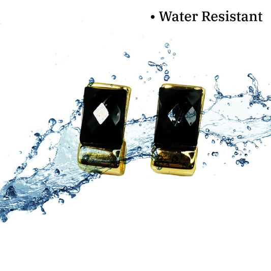 Trendy Stud Earrings For Women, 2 cm, Gold Plated, Fashion Jewelry for Women, Black Earrings, Anti Tarnish, Water Resistant, Lightweight, Gift Packaged