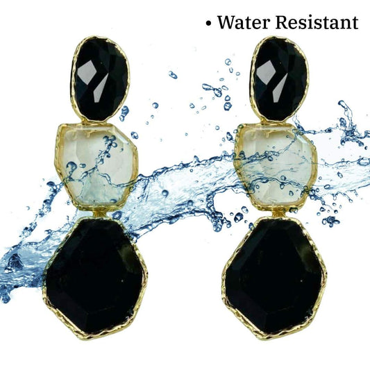 Black Earrings For Women, Elegant Drop Earrings, 3.5 cm, Black and Gold Plated, Teardrop Shape, Anti Tarnish, Water Resistant, Lightweight, Gift Packaged