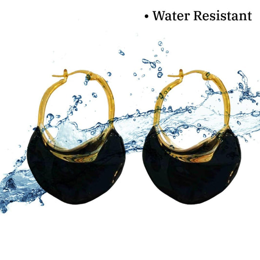 Black Earrings For Women, lack Petal Hoop Earrings, 3.5 cm, Gold-Plated, Statement Fashion Jewelry for Women, Anti Tarnish, Water Resistant, Lightweight