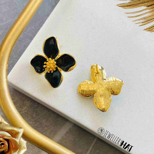 Our collection includes a variety of materials, including sterling silver, gold-plated brass, and black enamel. Each pair of earrings is crafted with the highest quality materials, ensuring they will last for years to come. The black finish adds a touch of sophistication and elegance to any outfit, making these earrings a versatile and timeless addition to your jewellery collection.