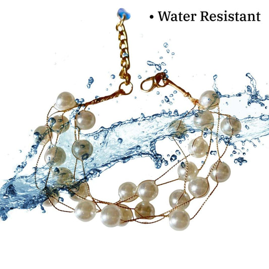 Multi-Strand Pearl Bracelet for Women, Gold-Plated Chain, Layered Design, Anti Tarnish, Water Resistant, Lightweight, Gift Packaged