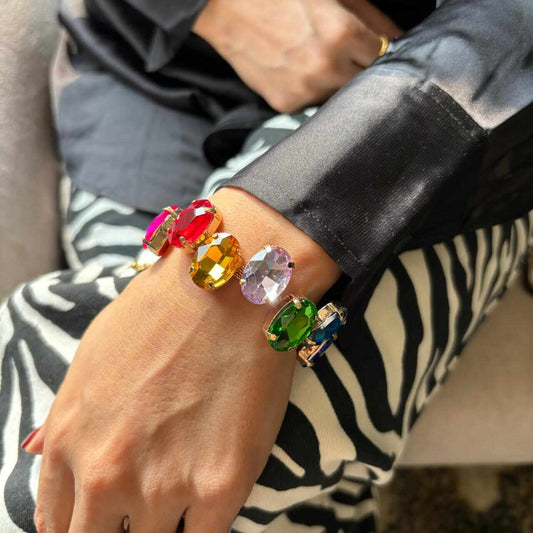 Multicoloured Stones Chain Bracelet With Lots Of Colourful Stones | Anti-Tarnish | Water Resistant | Gift Box Packing