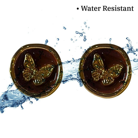 Black Earrings, Butterfly Stud Earrings For Women, 1.5 cm, Black and Gold Round Design, Anti Tarnish, Water Resistant, Lightweight, Gift Packaged