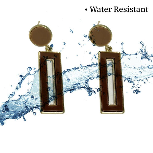 Geometric Rectangle Dangle Earring, 5.5 cm, Gold-Toned, Brown and White Enamel, Fashion Jewellery for Women, Anti Tarnish, Water Resistant, Gift Packaged