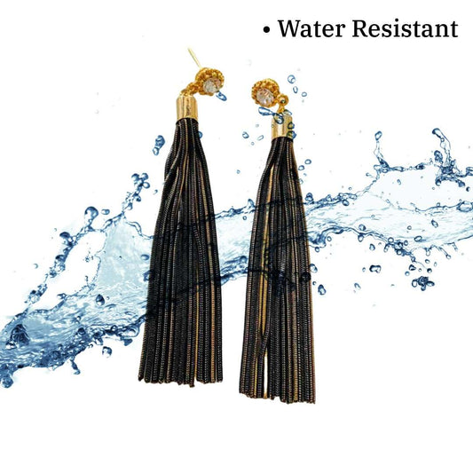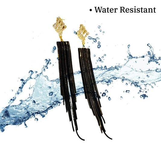Black Earrings For Women, Elegant Drop Earrings, 3.5 cm, Black and Gold Plated, Teardrop Shape, Anti Tarnish, Water Resistant, Lightweight, Gift Packaged