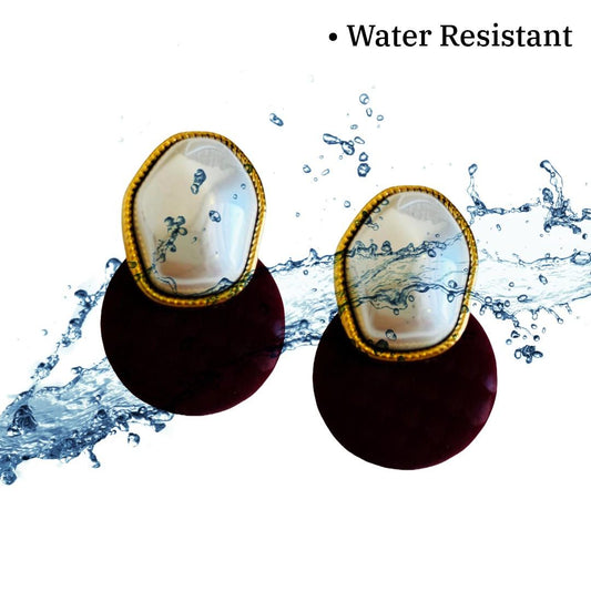 Gold-Plated Round Brown Earrings for Women, Stud Design Earrings, Anti Tarnish, Water Resistant, Lightweight, Gift Packaged