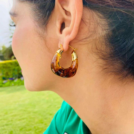 Brown Earrings For Women, Statement Stud Earrings, Black and Brown Design, Gold-Plated, Anti Tarnish, Water Resistant, Lightweight, Gift Packaged