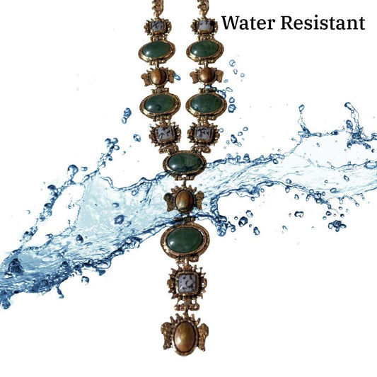 Statement Necklace, Green Jade and Brown Stone Embellished, Antique Gold Chain, Anti Tarnish, Water Resistant, Lightweight, Gift Packaged