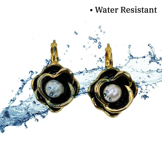 Black Earrings, Elegant Black Floral Stud Earrings for Women, 3 cm, Gold-Plated, Petal Design, Anti Tarnish, Water Resistant, Lightweight, Gift Packaged