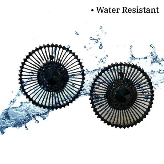 Black Earrings, Elegant Round Black Geometric Stud Earrings, 2.8 cm, Gold-Plated, Anti Tarnish, Water Resistant, Lightweight, Gift Packaged