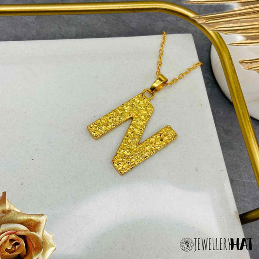Customised Name Pendant | Gold Plated N Word Necklace for Women | Initial Jewellery