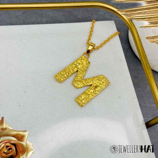 Gold Name Pendant Designs for Female | Gold Plated M Word Necklace | Initial Jewellery