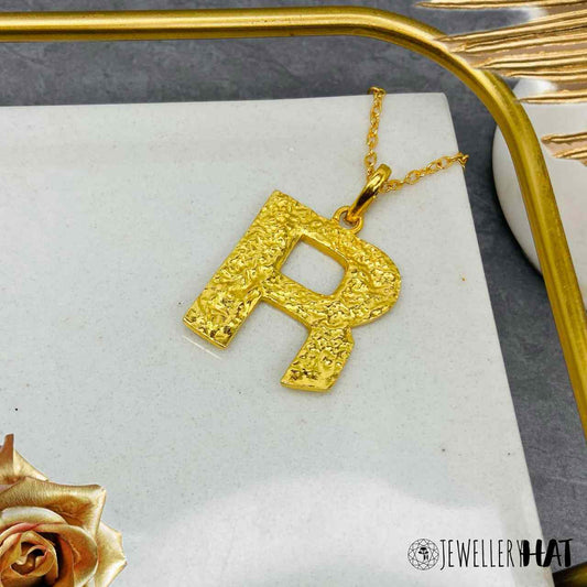 Name Locket Chain Online | Gold Plated R Word Necklace for Women | Initial Jewellery