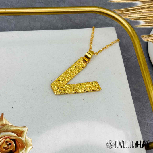 Name Plated | Gold Plated V Word Necklace for Women | Initial Jewellery