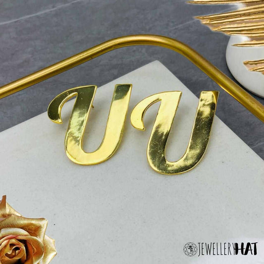 - Initial Stud Earrings: Simple yet elegant, our gold-plated initial stud earrings feature a minimalist design that adds a touch of personalization to your look. Perfect for everyday wear, these studs are available in a variety of Hindi and English initials.