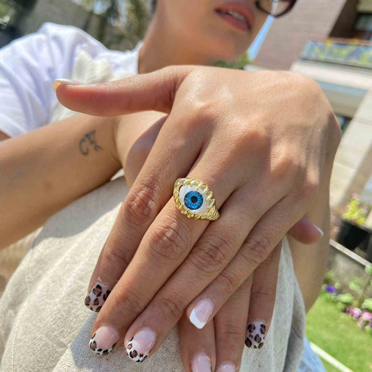 Eye Gold Ring | White Ring | Gold Plated Evil Eye Ring for Women | Artificial Jewellery