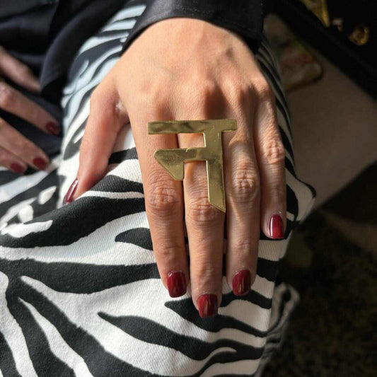 Jewellery Hat Gold Plated Hindi Kha Ring For Women, Adjustable Size, Metallic Finish, Anti Tarnish, Water Resistant, Lightweight, Gift Packaged