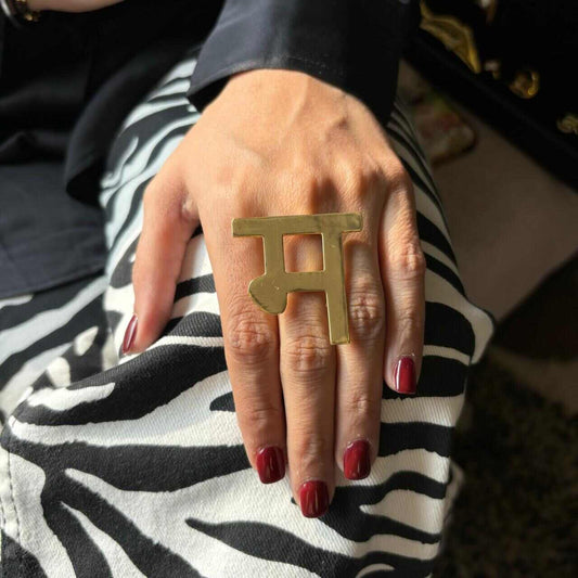 Jewellery Hat Hindi Aa Ring For Women, Gold Plated Ring, Adjustable Size, Anti Tarnish, Water Resistant, Lightweight, Gift Packaged