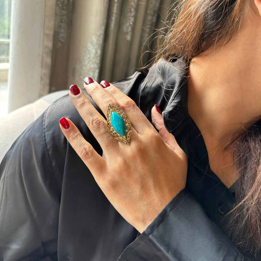 Turquoise Stone Ring | Anti-Tarnish | Water Resistant | Gift Box Packing