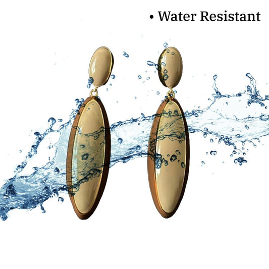 Elegant Oval Dangle Earrings For Women, 6 cm, Beige Enamel with Gold-Plated Finish, Women's Fashion Jewellery, Anti Tarnish, Water Resistant, Gift Packaged