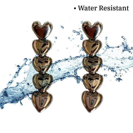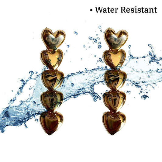 Gold-Plated Heart Drop Dangle Earrings, 5-Hearts Design, 6 cm, Fashion Jewellery for Women, Anti Tarnish, Water Resistant, Lightweight, Gift Packaged