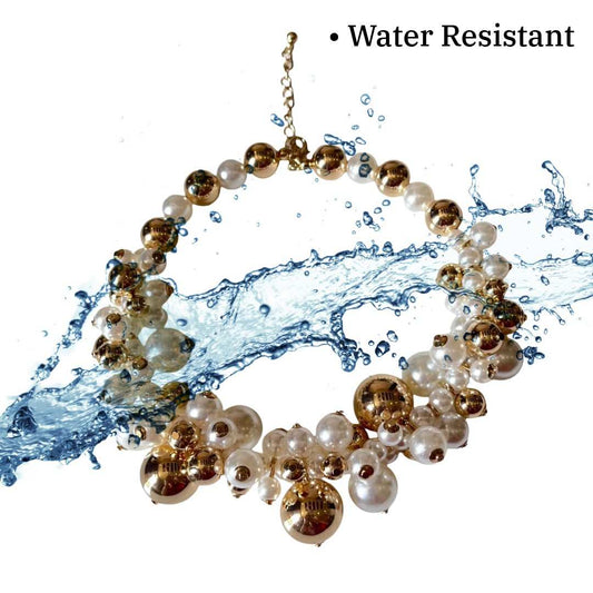 Pearl and Gold Ball Statement Necklace, Fashion Jewellery for Women, Anti Tarnish, Water Resistant, Lightweight, Gift Packaged
