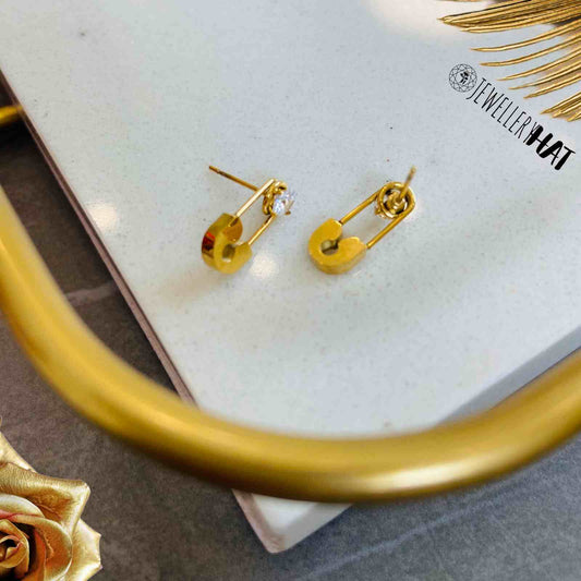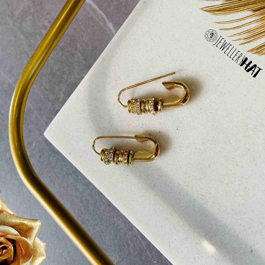 Gold Safety Pin Earrings | Gold Plated | Western Earrings For Women | Fashion Earrings