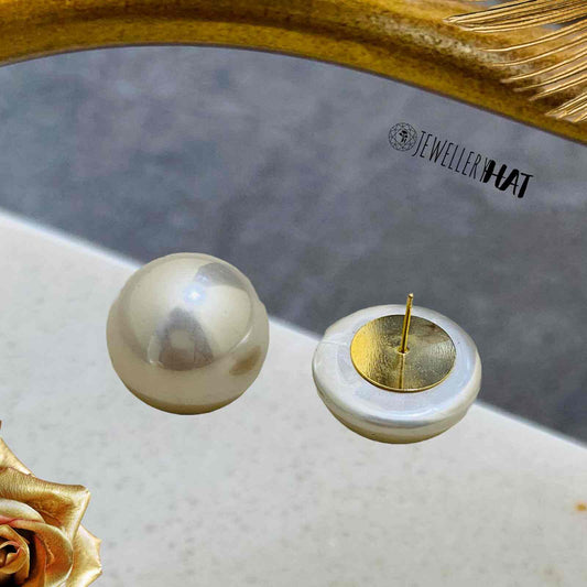 Jewellery Hat's ® big pearl studs - 20 mm big pearl earrings - big pearl stud earrings - available big pearl studs India December 2022 Fashion Jewellery
